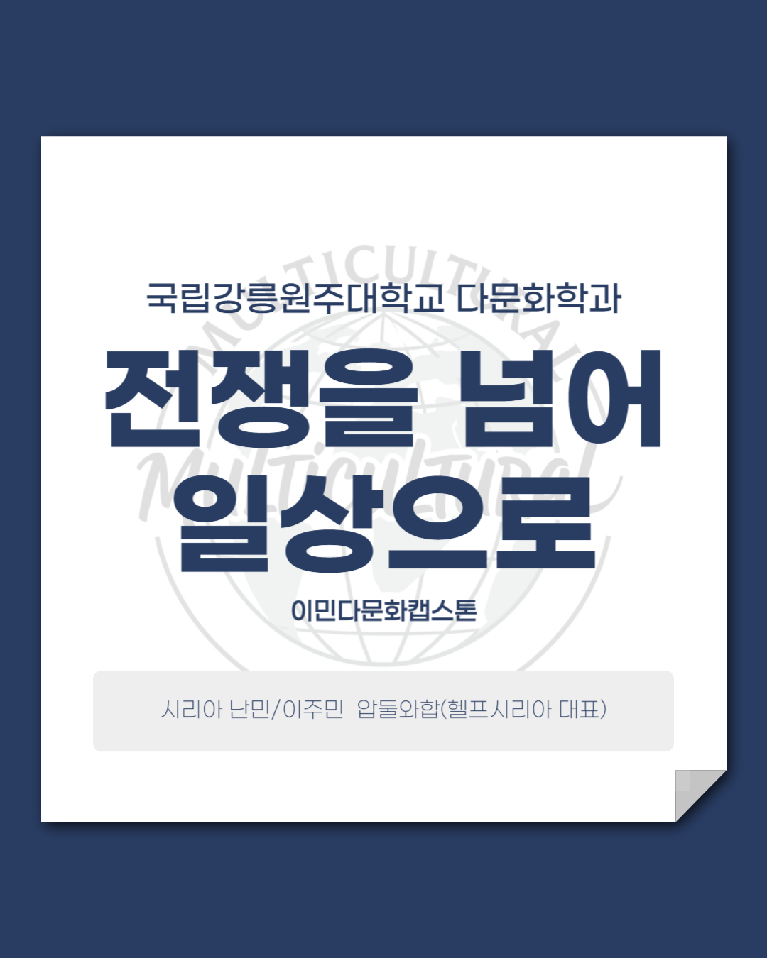 또한 어필 사무실에서 직접 강연을 듣고 인터뷰를 진행하면서 여러분들과 전쟁 이후, '이주민의 일상'과 그들이 느끼는 삶의 무게, 그리고 우리가 다문화학과로서 어떻게 바라보고 연대할 수 있을지 공유하고 싶었습니다 :)