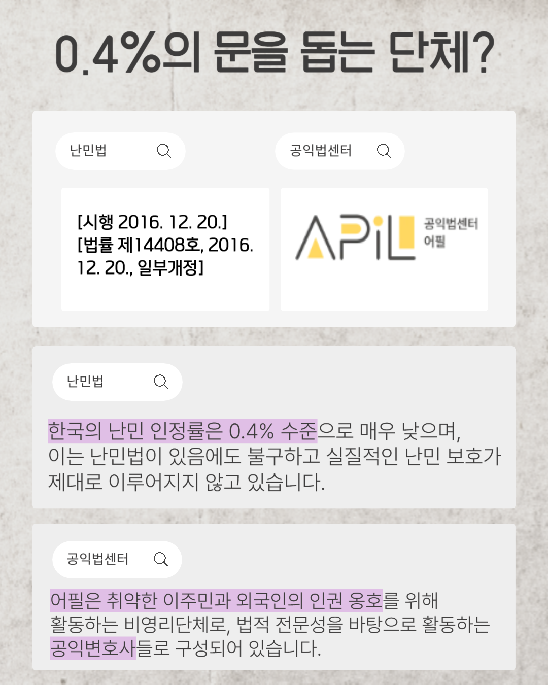 이번 카드뉴스는 공익법센터 어필(APIL)과 난민법을 중심으로, “공존”이란 말이 진짜 작동하려면 무엇이 바뀌어야 하는지를 다루고자 했습니다.
